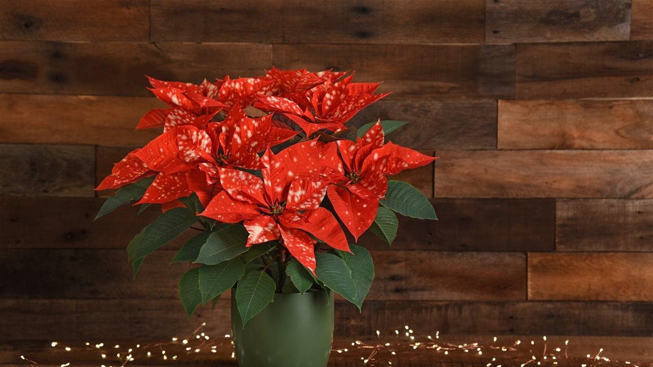 Starry days and nights: If you love the festive star-like look of the Sky™ Orange poinsettia, explore other colors in the same eye-catching pattern, such as Sky™ Fantasy, a red speckled poinsettia that shines in any holiday display.
